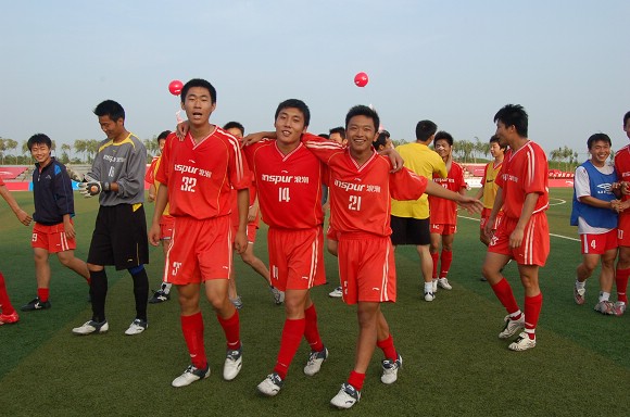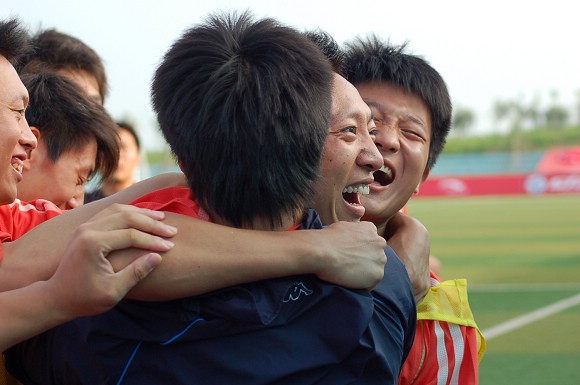 王緒和隊友們在為這記“世界波”歡呼。