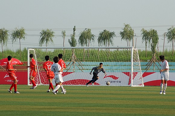 下半場開始后20分鐘過后,雙方在場上展開了一場驚心動魄的進球大戰。首先是我方11號前鋒王強在第23分鐘時利用角球的機會頭球攻門,皮球射入左門柱附近死角,守門員雖盡力撲救,但無奈鞭長莫及。場上比分變為2:0。