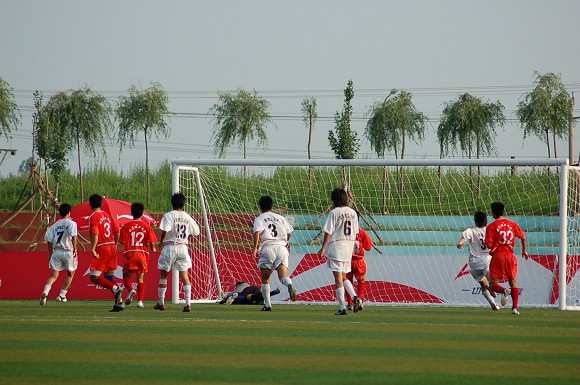 剛過2分鐘,我方的進攻攻勢卷土再來,對方守門員撲救脫手,17號張樹及時插上補射入網。場上比分變為3:0。我方勝局基本已定。