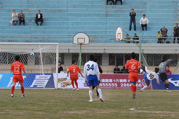 第73分鐘,呼和浩特隊在禁區前再次得到任意球機會,在兩名隊友的跑動掩護下,29號巴西外援威廉大力施射,球帖著草皮直奔網窩,3-0!
