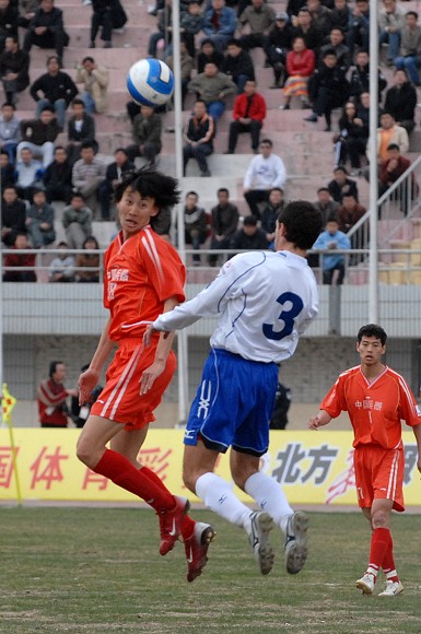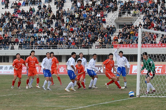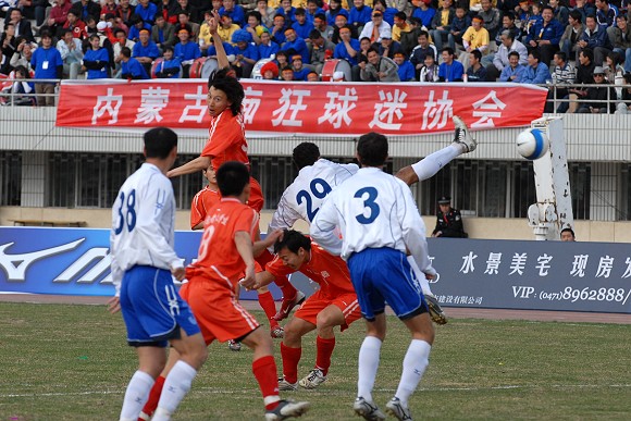 開場后,呼和浩特隊主要在左路展開攻勢。第22分鐘,愛國者大學生隊11號王強在右路形成突破,但被對方38號袁哲及時解圍。第27分鐘,愛國者大學生隊獲得角球,8號隊長袁微傳向遠點,跟上的隊友將球傳入禁區,但用力過大出了底線。第33分鐘,愛國者大學生隊在對方禁區中路進行配合后傳入禁區,21號張淼門前搶點未果,這也是學生軍最有威脅的一次進攻。第35分鐘,呼和浩特隊逼得角球,隊長9號張考主罰,新加盟的3號南斯拉夫外援頭球高出。