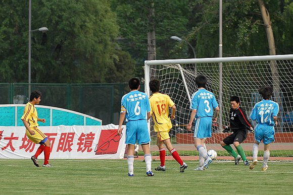 昨天下午,北理工在北航體育場迎來了第六輪客場與北航足球隊的比賽,身穿黃色球服的北理工隊的精神面貌和拼勁與前幾場比賽完全變了個樣子,繼上半場以1:0領先之后,下半場再入4球,最終以5:0戰勝了北航足球隊,展示了其真正實力,也為本周末中甲聯賽北理工一隊主場迎戰江蘇舜天開了一個碰頭彩!