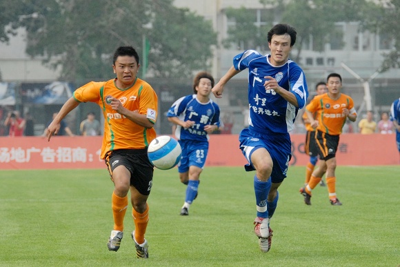 也許是輕敵的緣故,廣州醫藥隊一上來踢得有些漫不經心。而學生軍面對勁敵絲毫沒有放棄,大家都鼓足了勁奮力一搏。比賽前20分鐘雙方各有破門機會,廣藥并沒能在學生軍身上占到便宜。相反,愛國者大學生隊頻頻通過反擊威脅廣藥的防線,第26分鐘,韓國留學生金俊植左路帶球狂奔10余米后大力抽射,球稍微高出廣藥大門。第29分鐘,愛國者大學生隊隊長袁微被廣州醫藥外援撞傷,一分鐘后他再次被踢中,受傷不輕,被擔架抬出場外后才再次回到場上。