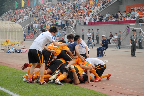 在今年中甲比賽中,出現了一支很特別,很有闖勁的隊伍,引起了全社會廣泛的關注。他就是 “北京愛國者大學生足球隊”。他全部由北京理工大學的學生軍組成,在去年作為唯一一支非職業隊與眾多職業隊較量,在金志揚教練的帶領下,一舉奪得乙級聯賽冠軍,沖甲成功,創造了中國足壇的一個神話。今年中甲,這支隊伍得到了國內知名IT企業愛國者的鼎力支持,并以“愛國者大學生隊”的名稱征戰中甲。