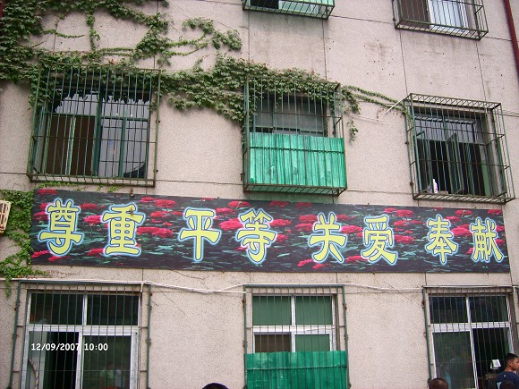 這所學校目前有學生60余人,其中5人為外地學生,老師共有20余人,在校的學生都是智力上有缺陷的殘疾兒童。