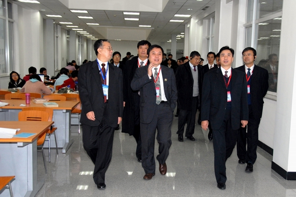 11月14日上午,教育部本科教學(xué)工作水平評(píng)估專家組成員在學(xué)校領(lǐng)導(dǎo)的陪同下來到圖書館考察工作。在圖書館大廳,張永發(fā)館長向各位專家介紹了圖書館概況,在觀看了“日新月異的北京理工大學(xué)圖書館”的展板之后,專家們實(shí)地考察了多媒體閱覽室、報(bào)刊閱覽室和中文自科圖書閱覽區(qū)等,考察過程中專家們在張館長的講解下邊走、邊看、邊問。