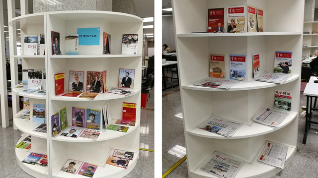 “十九大”時事新聞展。黨的“十九大”是具有里程碑意義的重要會議,圖書館在一層休閑區開展“時事新聞展”,展出與“十九大”相關的報刊雜志,隨時更新,方便讀者及時了解會議熱點,學習會議內容,領悟會議精神,用習近平新時代中國特色社會主義思想武裝頭腦、指導實踐,樹立正確的理想信念,以高尚的道德情操修身養德,完善自身修養。