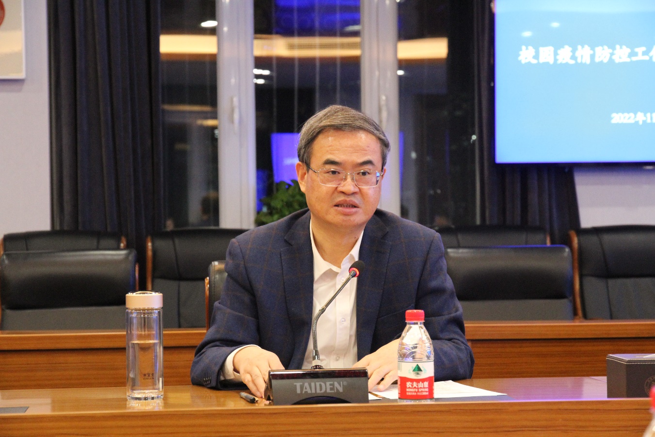 張軍強調(diào),一是要提高站位,高度重視疫情防控工作。近期北京市疫情處于高位,學(xué)校周邊及個別高校出現(xiàn)疫情,病毒就在周邊、危險就在眼前,各單位要嚴格落實主體責(zé)任,守土有責(zé)、守土盡責(zé),堅決守護好校園安全,堅決杜絕僥幸心理和麻痹思想。二是從嚴從緊,全面落實各項常態(tài)化防控舉措。要繼續(xù)嚴把校門關(guān),嚴格執(zhí)行各項查驗;加強各類人員進出校管理,嚴格校外人員進校審批;按要求做好師生員工“三天一檢”和“保食潔”等重點人群“一天一檢”的常態(tài)化核酸檢測工作,同時提升核酸檢測能力水平;做好線上教學(xué)各項保障工作,著力做到線上線下靈活切換;加強快遞物流等的入校消殺和日常消殺;進一步依托網(wǎng)格化管理全面落實各項常態(tài)化疫情防控舉措。三是關(guān)心關(guān)愛,持續(xù)做好宣傳引導(dǎo)工作。深入做好廣大師生員工及家屬區(qū)離退休人員的思想工作和服務(wù)保障工作,凝心聚力,舉全校之力共同守好校園防線;充分用好學(xué)校接訴即辦平臺,聆聽師生關(guān)切,及時回應(yīng)合理訴求,做到“接訴即辦”“未訴先辦”。他指出,當前全校上下正在掀起學(xué)習(xí)貫徹落實黨的二十大精神熱潮,要堅持把人民至上、師生至上作為做好校園疫情防控工作的根本宗旨,堅持系統(tǒng)觀念,科學(xué)統(tǒng)籌、守正創(chuàng)新,繼續(xù)將疫情防控責(zé)任壓緊壓實,將各項防控措施落實落細,繼續(xù)統(tǒng)籌好疫情防控和學(xué)校各項事業(yè)發(fā)展,以實際行動落實黨中央“疫情要防住、經(jīng)濟要穩(wěn)住、發(fā)展要安全”的要求,切實保障校園安全穩(wěn)定,穩(wěn)步推進“雙一流”大學(xué)建設(shè)。