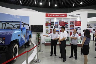 調研組首先參觀了北京汽車產業研發基地“汽車型”沙盤、北汽集團概念車新能源車、北汽集團歷史文化展覽館和北汽造型設計研究中心。北汽集團黨委副書記、紀委書記李志立、副總經理孔磊、黨委常委組織部兼人力資源部部長高原等陪同參觀。