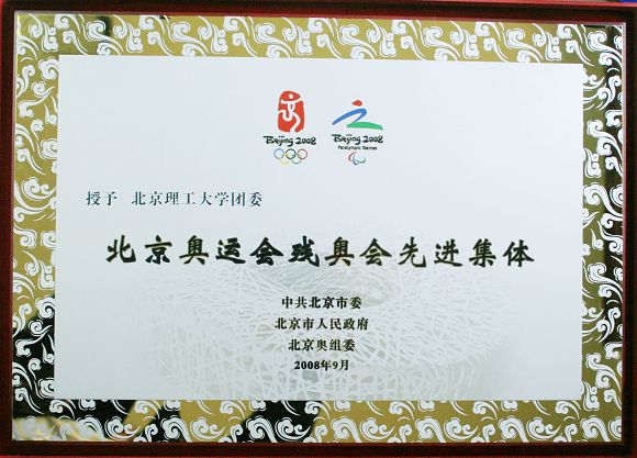 我校團委被授予“北京奧運會殘奧會先進集體”榮譽稱號