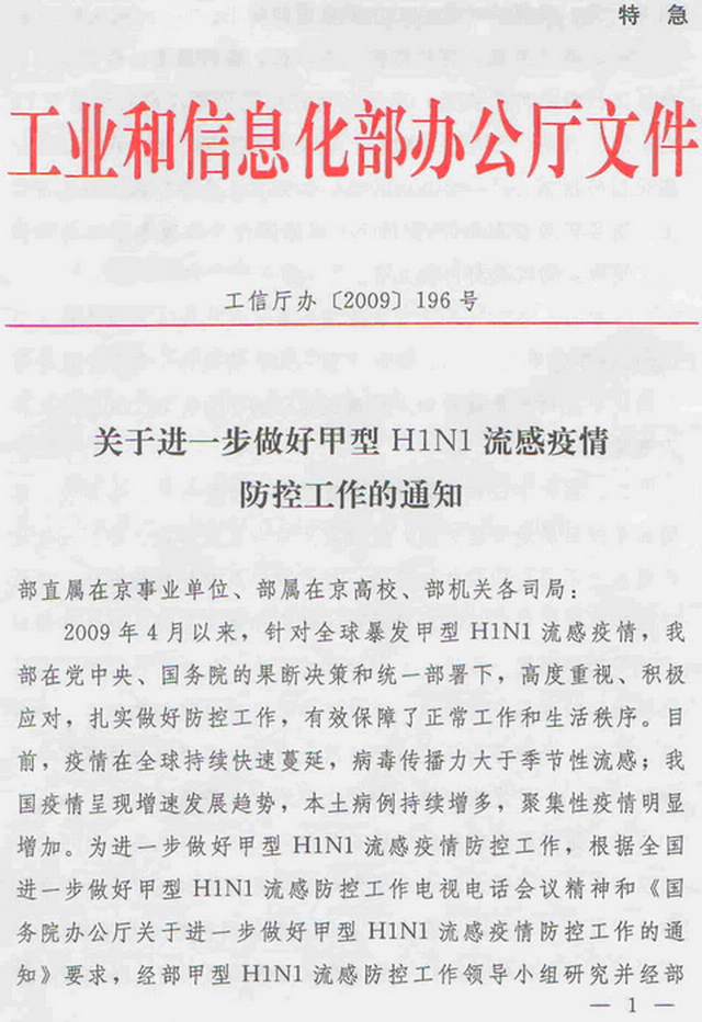 現將工業和信息化部辦公廳《關于進一步做好甲型