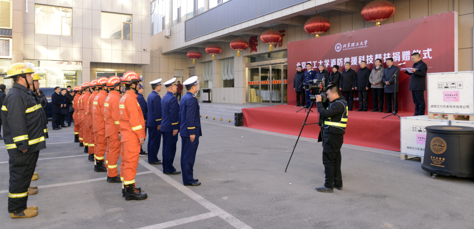 座談會之前,趙長祿一行還見證了學校為方山縣增訂黨報黨刊儀式,向消防救援部隊捐贈 “柔衛甲”裝備的儀式。