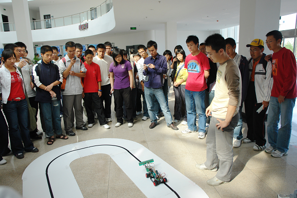 我校智能控制大賽獲獎作品——智能小車,正進行現場表演