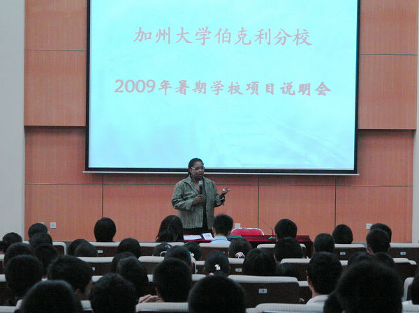 10月17日下午,加州大學(xué)伯克利分校校際合作項目主管 Skye Ward 女士應(yīng)教務(wù)處的邀請來到我校,在我校國際交流合作處和教務(wù)處老師的全程陪同下,Skye Ward 女士不辭辛苦,連續(xù)在良鄉(xiāng)校區(qū)和中關(guān)村校區(qū)舉辦了兩次2009年暑期學(xué)校項目說明會。參會學(xué)生反映強烈,參與積極,他們良好的英語聽說水平,給Skye Ward 女士留下深刻的印象。