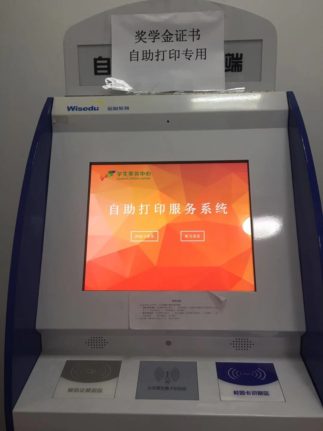 1.獎(jiǎng)學(xué)金自助打印機(jī)上有“獎(jiǎng)學(xué)金證書(shū)打印專(zhuān)用”標(biāo)識(shí);