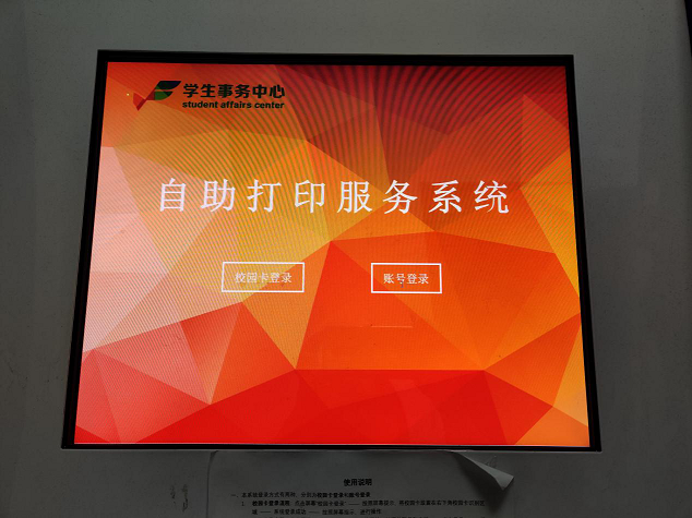 第二步:在自助打印設備上選擇登錄(校園卡登錄和賬號登錄均可)——按照屏幕提示點擊完成打印。
