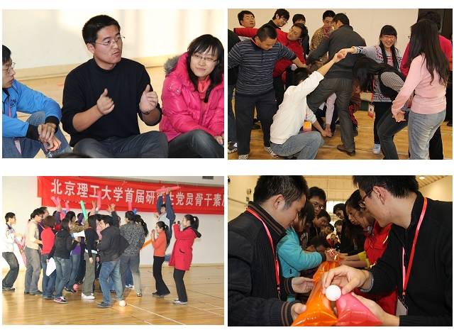 11月29日下午,“奏響黨旗下的青春之歌”2009-2010年北京理工大學研究生黨員骨干培訓班素質拓展訓練在我校體育館熱身館舉行。黨員骨干班100名學員每20人一組分成5組,在我校社會工作專業學生組成的教練團的帶領下開展了內容豐富、形式多樣的素質拓展訓練。