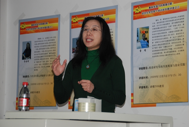 12月5日下午,2009年研究生黨員骨干培訓班系列講座如期進行。本次講座邀請的是北京理工大學人文社會科學學院社會工作與心理學系賈曉明教授,賈曉明教授是中國心理學會臨床與咨詢心理學專業機構與專業人員注冊系統注冊委員會委員,中國心理衛生協會心理咨詢與治療專業委員會委員,研究領域為心理咨詢的理論與方法、青少年心理健康、婚姻家庭問題。
