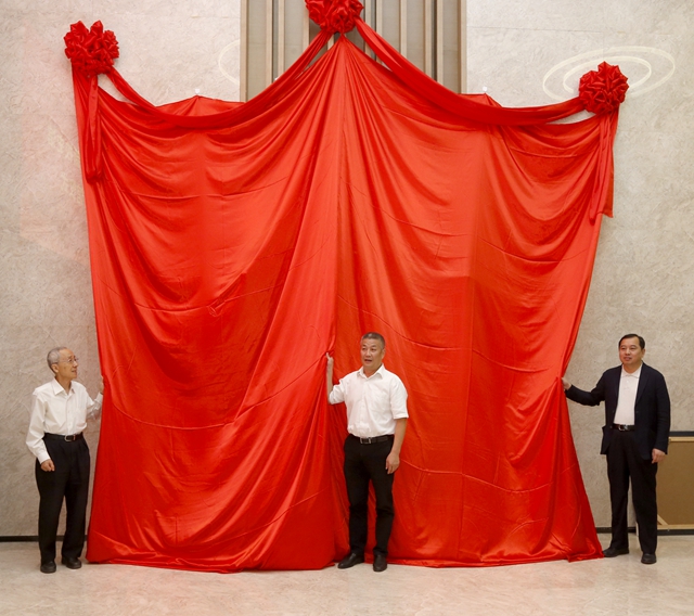 趙長祿、毛二可、唐南軍共同為新校史館揭牌。