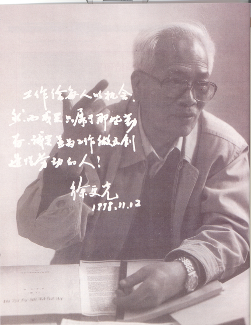 時間就是生命!時間就是速度!時間就是力量!徐更光以這樣緊迫的責(zé)任感自勵,在充滿希望的年代里,他希望用自己的智慧與知識為國家建設(shè)添磚加瓦。他戲言,“像我這般大器晚成的人如果還不努力做點事情,就真要白來這世上一遭了。”