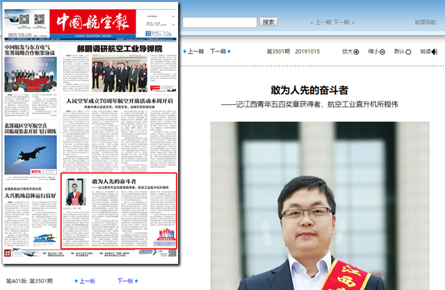 編輯:吳楠 審核:王征 閱讀次數:原文標題:敢為人先的奮斗者——記江西青年五四獎章獲得者、航空工業直升機所程偉