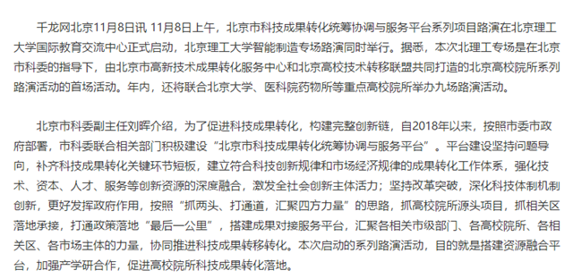 編輯:吳楠 審核:王征 閱讀次數:原文標題:打造資源融合平臺 加速成果轉化落地——北京市科技成果轉化平臺系列路演拉開帷幕