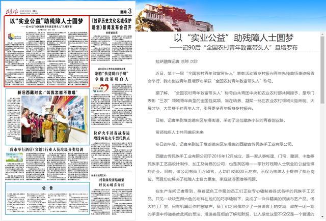 于是,旦增羅布對殘疾人的援助方式開始由募資捐助轉向創辦專門聘用殘疾人的企業,他自己稱之為“實業公益”。