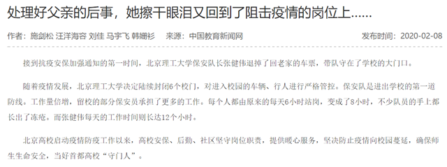 接到抗疫安保加強通知的第一時間,北京理工大學保安隊長張健偉退掉了回老家的車票,帶隊守在了學校的大門口。