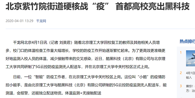 編輯:吳楠 審核:劉曉俏 閱讀次數:原文標題:北京紫竹院街道硬核戰“疫” 首都高校亮出黑科技