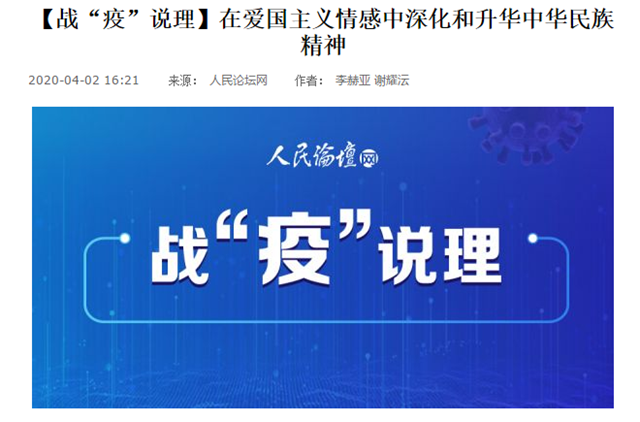 編輯:吳楠 審核:劉曉俏 閱讀次數(shù):原文標(biāo)題:【戰(zhàn)“疫”說理】在愛國主義情感中深化和升華中華民族精神