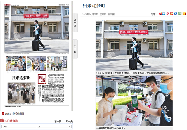 北京理工大學(xué)迎來了首批以今年畢業(yè)研究生為主的返校學(xué)生。學(xué)生抵達(dá)后,接站老師核對學(xué)生姓名,查看健康寶狀態(tài),確認(rèn)無誤后,帶領(lǐng)學(xué)生統(tǒng)一乘車返校。到達(dá)學(xué)校后,學(xué)生在畢業(yè)生返校專用通道進(jìn)行測溫、人臉識別、掃健康碼、核驗證件、領(lǐng)取臨時出入證等一系列操作后,進(jìn)入闊別已久的校園。校園內(nèi)懸掛著“平安返校、順利畢業(yè)”“歡迎回家”等標(biāo)語。