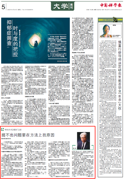在周立偉看來,研究生之所以提不出問題,在于科研環境功利化的影響,書讀得少、知識面窄、思想不開闊、思考上受到局限、跳不出書本或前人的框框,總覺得書本上寫的傳統的見解、權威的結論,都是天經地義、不可置疑的。因此,束縛了研究生的思想,雖有疑問,卻不敢提出問題。