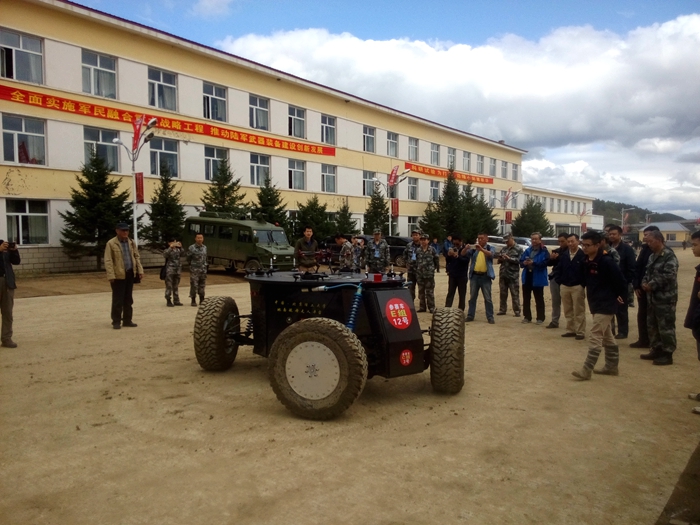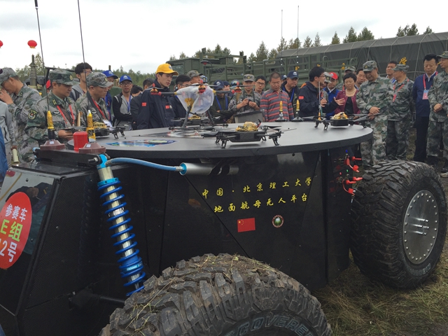 “跨越險阻2016”地面無人系統(tǒng)挑戰(zhàn)賽由陸軍裝備部主辦,旨在加快陸軍地面無人裝備研發(fā)步伐,促進各高校、科研機構(gòu)、企業(yè)的無人智能技術(shù)快速發(fā)展并轉(zhuǎn)向?qū)崙?zhàn)化,本次比賽有來自中國科學(xué)院、中國兵器工業(yè)集團、北京理工大學(xué)、國防科技大學(xué)等44個單位的99個車隊參與。比賽期間,“地面航母”受邀在陸軍裝備部各位首長、全體參賽隊伍面前進行了15分鐘的單獨展示表演,并順利地完成了城鎮(zhèn)偵查搜索組、山地運輸組的比賽。