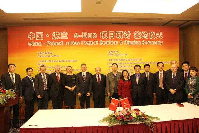 經(jīng)過北理工團隊和波蘭團隊的多次互訪,2013年2月初,北京理工大學(xué)、北京理工華創(chuàng)電動車技術(shù)有限公司、上海電巴新能源科技有限公司等單位與波蘭TAURON集團和華沙理工大學(xué)成功簽訂了“中波e-Bus項目”合作協(xié)議。通過該項目,北理工的電動客車技術(shù)和產(chǎn)品將授權(quán)波蘭公司使用,并由波蘭開拓歐洲市場,在歐盟范圍內(nèi)推廣和應(yīng)用。項目啟動時得到國家科技部和北京市政府的支持,成為外交部和科技部的督辦項目。