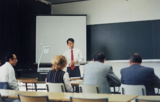 1988年,梅鳳翔指導研究生學習(左三為梅鳳翔)