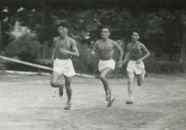 求學時期的祁載康不但學習成績優秀,還非常熱愛運動。圖為祁載康(中)參加運動會中長跑比賽