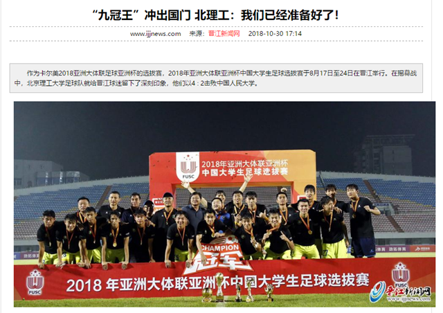在8月離開晉江之后,北京理工大學就進入了緊張的備戰(zhàn)中。這一次,北京理工大學再次代表中國,參加卡爾美2018亞洲大體聯(lián)足球亞洲杯的比賽,他們已經(jīng)準備好了。