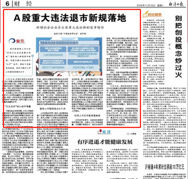 11月16日,滬深交易所正式發布《上市公司重大違法強制退市實施辦法》(簡稱《實施辦法》),并修訂完善《股票上市規則》《退市公司重新上市實施辦法》等規則。同時,深交所宣布啟動對長生生物重大違法強制退市機制。