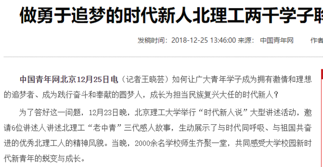 【中國青年網】做勇于追夢的時代新人北理工兩千學子聆聽“時代新人說”