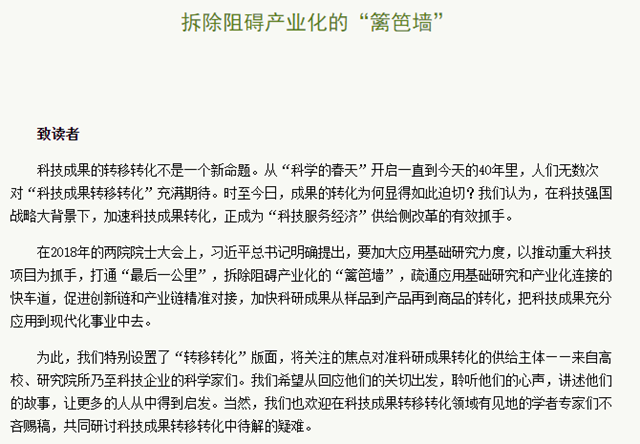 【中國科學報】拆除阻礙產業化的“籬笆墻”