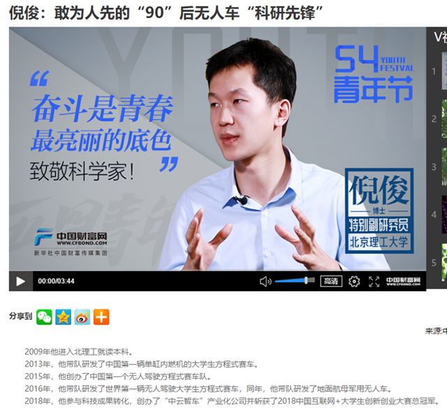 2015年,在導(dǎo)師的指導(dǎo)下,倪俊結(jié)合自己的研究方向,帶領(lǐng)70名青年學(xué)子,組建了一只全新的“北理工無(wú)人賽車隊(duì)”,并成功研發(fā)了世界首輛無(wú)人駕駛大學(xué)生方程式賽車,引起了社會(huì)的廣泛關(guān)注。