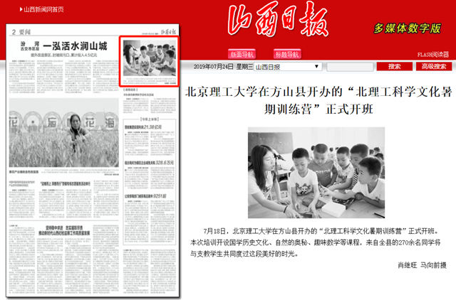 【山西日?qǐng)?bào)】北京理工大學(xué)在方山縣開辦的“北理工科學(xué)文化暑期訓(xùn)練營(yíng)”正式開班