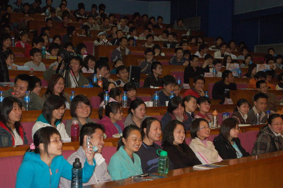 在洪戰輝的演講結束后,學生工作部部長劉明奇即興進行了點評,他說:“我們無法選擇父母,無法選擇家境,但我們面對困難的態度是可以選擇的,我們的志向是可以選擇的,我們的未來是我們可以選擇的!當你經濟上遇到困難的時候,請你想想洪戰輝;當你情感上遇到困難的時候,請你想想洪戰輝;當你找工作遇到困難的時候,也請你想想洪戰輝;當你人生道路上遇到困難和挫折的時候,請你想想洪戰輝!”劉老師的點評同樣贏得了熱烈的掌聲。