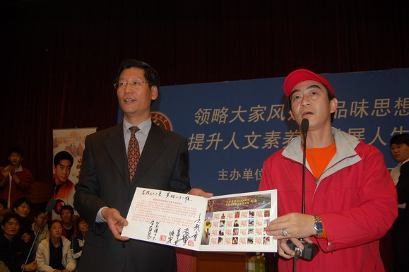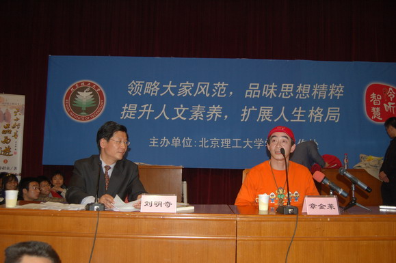 2007年4月16日晚7:00“聆聽智慧”名家論壇的第十七期在中心教學(xué)樓一層報(bào)告廳舉行。中國(guó)最經(jīng)典的電視劇《西游記》中孫悟空的扮演者章金萊老師應(yīng)邀來到我校,為我?guī)熒鲱}為《六小齡童品西游》的專題講座。