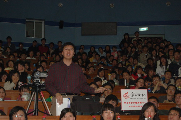 本次講座受到了同學(xué)的廣泛關(guān)注,講座開始前4個(gè)小時(shí)主會(huì)場(chǎng)已經(jīng)沒有了座位,講座開始后,同步直播的中教317教室也沒有了座位,飛翔論壇的直播帖點(diǎn)擊率突破了5000次,京工世紀(jì)視頻直播的在線人數(shù)接近1000人。