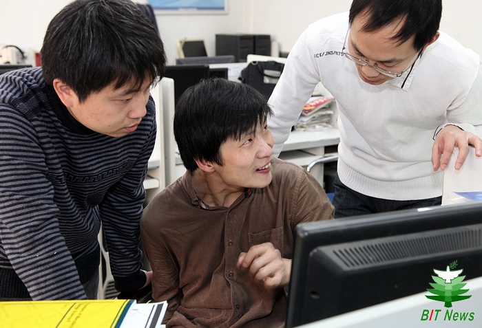 在學習道路上,大奎最要感謝的就是自己的導師——樊孝忠教授。在大奎的眼里,樊老師不僅是個治學嚴謹的學術導師,更是和藹可親的人生導師。大奎說:“我能來北理讀書,是樊老師給了我機會,他沒有拒絕我,還鼓勵我加油,我甚至不知道要怎么感謝他”。而在樊老師的眼里,大奎是一個身殘志堅的好學生。樊老師清楚地記得2011年第一次見到大奎的情景,那天大奎拄著雙拐來參加博士生入學復試,雖然行動不便、言語緩慢,但是所有題目卻都能從容應對。樊老師回憶說,大奎在復試中表現得相當優秀,“他程序做得不錯,另外在交流的時候,我能夠感覺到他對深造有很強烈的渴望”。當時有三名同學同時報考了樊老師的博士,筆試和面試也都符合錄取資格,但樊老師那年只有兩個博士名額。經過深思熟慮,樊老師將其中一位強軍計劃的學生推薦給了另一位導師,毅然把大奎留在了自己的身邊。和大奎接觸的兩年時間里,這個身殘志堅的孩子常常給樊老師帶來感動和驚喜。樊老師告訴筆者,大奎有一些品質很打動他:一是自強,大奎能做的事情一般都會自己做,他特別不喜歡麻煩別人;二是認真,大奎在學術研究上思維敏捷,對課題的認識也相當深刻;三是精益求精,每次實驗室召開組會時,大奎做的講演PPT都很有美感,儼然一件藝術品。從事電腦處理“自然語言”的研究是很枯燥的,但是大奎卻對這個領域充滿了興趣,樊老師說:“大奎很有志向,他真心希望能夠在學術方面做出新突破。”