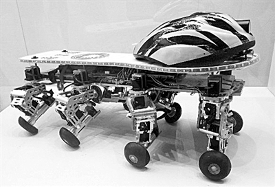 2012年10月,在“科學(xué)發(fā)展、成就輝煌”大型圖片展民生展廳里,一只身披滑板,頭戴山地車頭盔,造型時尚獨(dú)特的機(jī)器人吸引了眾多參觀者的眼球。經(jīng)了解,原來這就是由北京理工大學(xué)特種機(jī)器人創(chuàng)新團(tuán)隊研發(fā)的“新型節(jié)肢機(jī)器人”。這款機(jī)器人在2011年“第四屆全國大學(xué)生創(chuàng)新年會”中獲得第一名,經(jīng)教育部推薦,被中宣部、國家發(fā)改委確定為“科學(xué)發(fā)展、成就輝煌”大型圖片實物展展品,成為教育系統(tǒng)向黨的“十八大”獻(xiàn)禮的一個代表性成果。