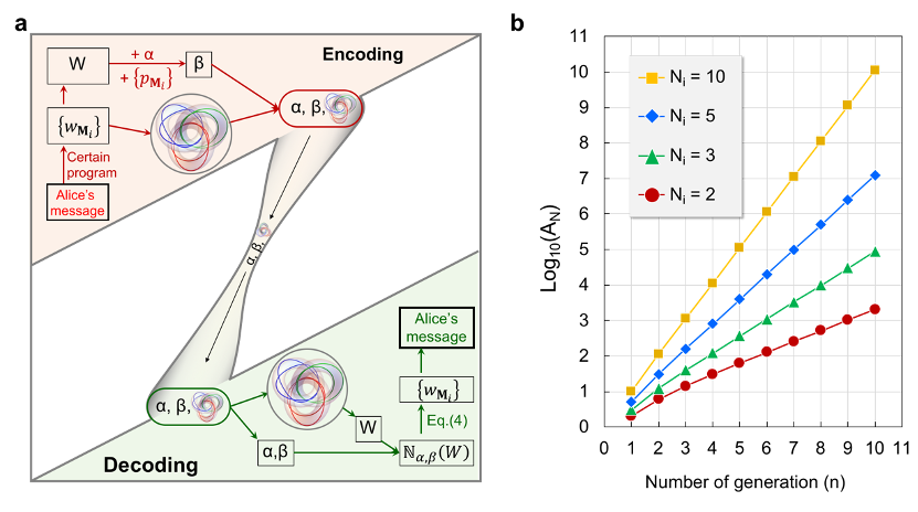 。研究人員使用這些拓撲不變量作為信息的載體,設計了具有高容量的拓撲編碼方案,如圖2a所示。首先,信息的發送者Alice把她要發送的信息轉換為一組繞數