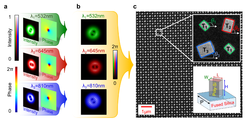 圖3. 用于生成光學嵌套紐結的超表面全息設計。