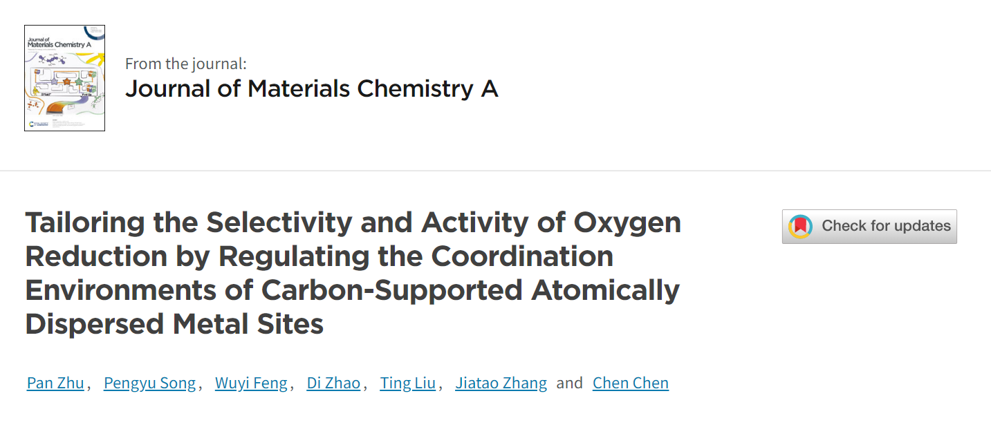 論文標題:Tailoring the Selectivity and Activity of Oxygen Reduction by Regulating the Coordination Environments of Carbon-Supported Atomically Dispersed Metal Sites